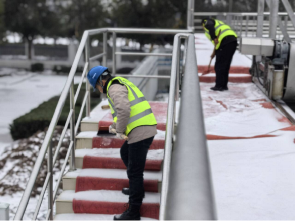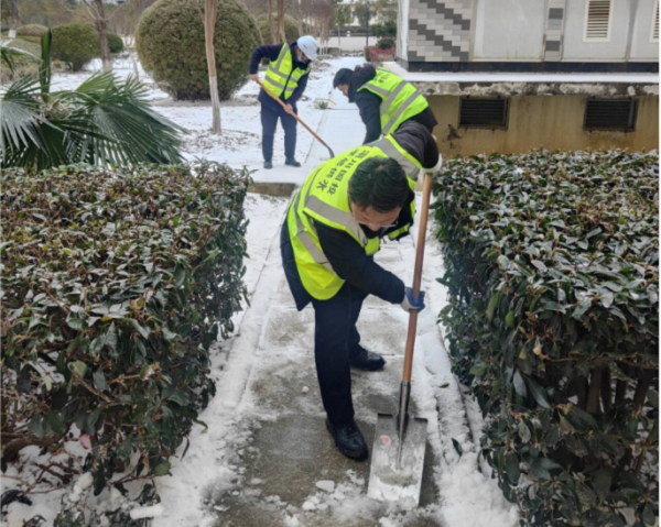 以雪為令,雪停路清。22日早上7點,公司派出5名志愿服務(wù)隊員參與公交站臺掃雪除冰行動,有力保障群眾公交出行安全。除此之外,為了保證生產(chǎn)廠區(qū)道路暢通,公司采取有力舉措,仙女湖水廠、二水廠、一水廠、龍宮等多個辦公區(qū)域共調(diào)動工作人員100余名和2臺鏟車,采取撒鹽破冰、鏟雪等方式,確保生產(chǎn)及辦公區(qū)域道路暢通。