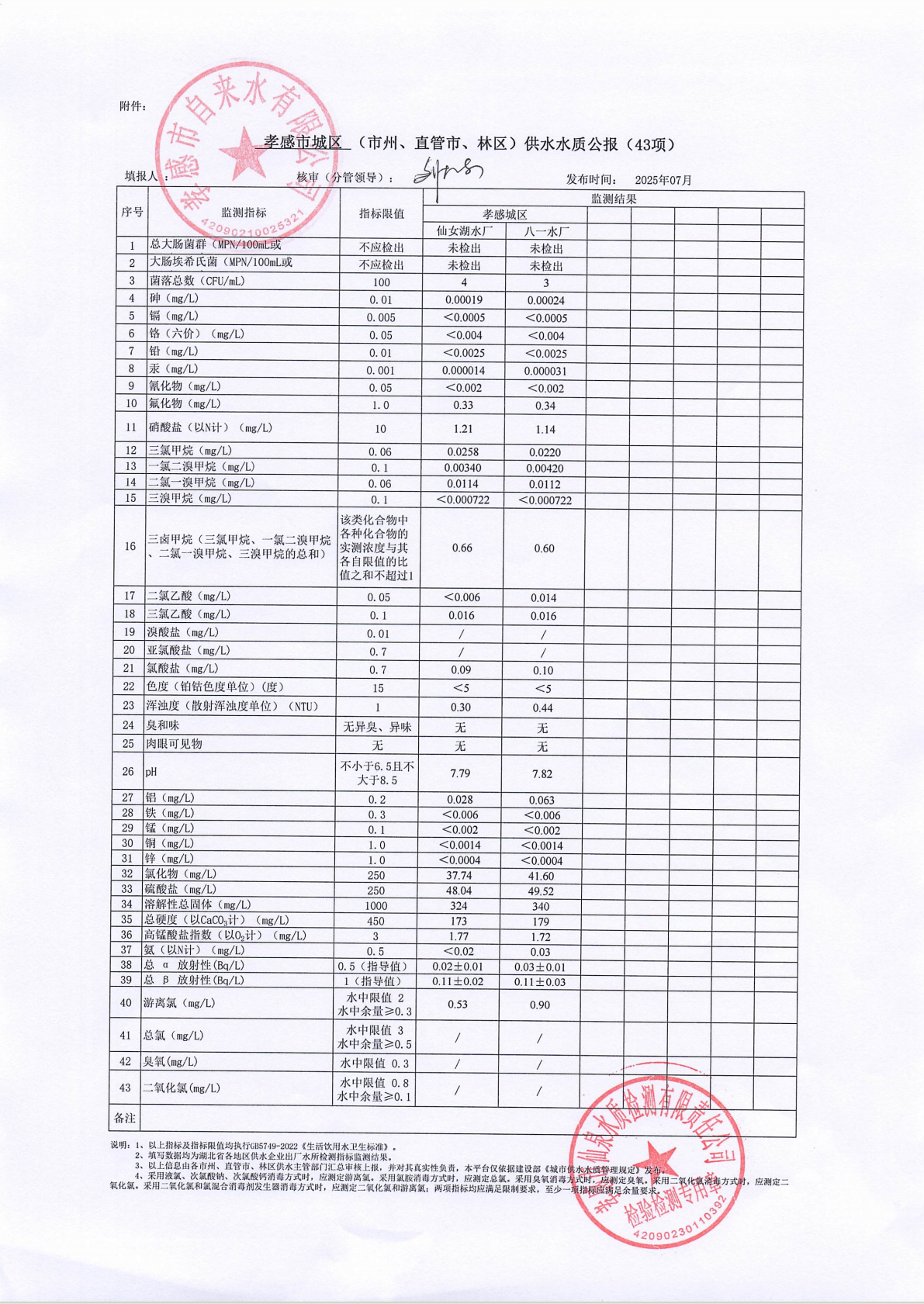 2025年7月水質(zhì)報告